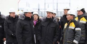 На мероприятии присутствовали премьер-министр РФ Д.А.Медведев, губернатор ХМАО Н.В.Комарова и глава Роснефть И.И.Сечин.
